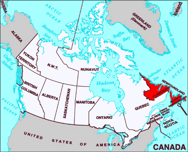 Ele a lieu en cette période de l’année principalement sur la côte Est du Canada et plus particulièrement dans la région du Golf de St Laurent et de Terre Neuve (voyez ci-dessous la carte avec les points rouge – copyright de la carte www.maptown.com).