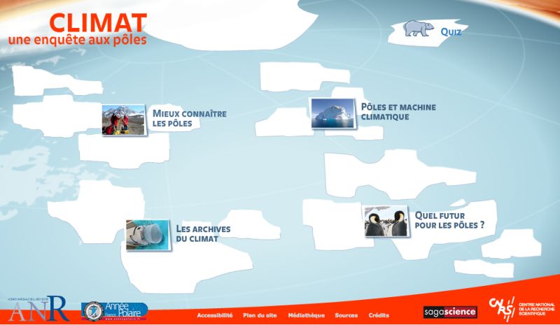 Ce site web multimédia et interactif a été réalisé par l’équipe Sagascience de la direction de la communication du CNRS à l’occasion de la 4e Année Polaire Internationale (API 2007-09) dans le cadre d’un appel à projets de l’Agence nationale de la recherche (ANR).
