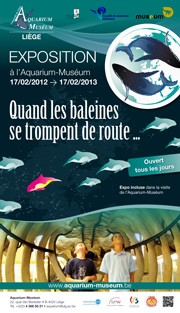Du vendredi 17 février 2012 au dimanche 17 février 2013, se tiendra à l’Aquarium-Muséum de Liège (Belgique) une exposition intitulée « Quand les baleines se trompent de route… » qui est consacrée aux cétacés, aux mammifères marins tels les dauphins, les marsouins, les rorquals, les cachalots…  et aux échouages de certains d’entre eux en Mer du Nord.