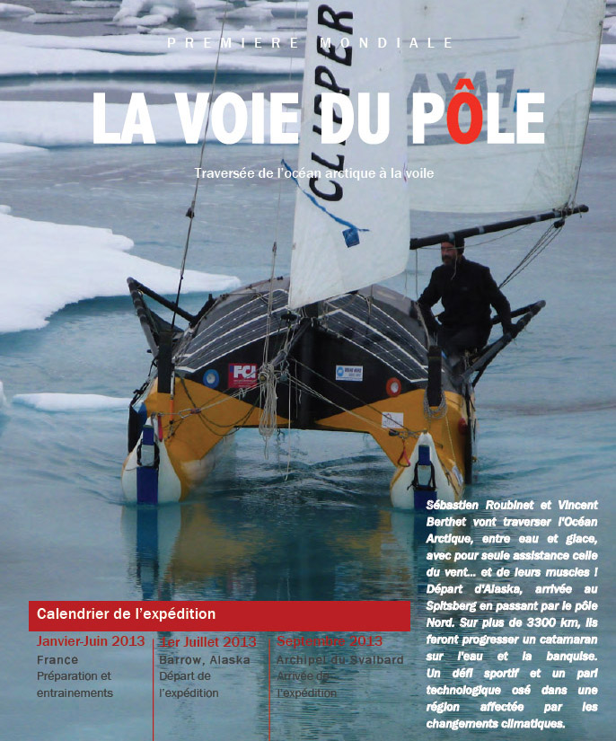 Les deux français Sébastien Roubinet et Vincent Berthet vont entamer dès ce début juillet une première mondiale : une incroyable traversée à la voile de l’océan glacé Arctique sans moteur et sans assistance à partir du village Inuit de Barrow au Nord de l’Alaska direction l’archipel Norvégien du Svalbard via le Pôle Nord.