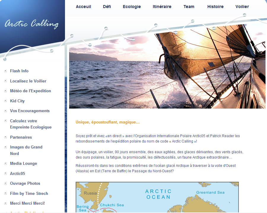 Non seulement, il a mis sur pied le site de son projet www.arcticcalling.net où il défend notamment l’idée selon laquelle nous devons tous œuvrer à ce que l’océan Arctique et les terres d’alentours deviennent au plus vite « Patrimoine de l’Humanité » où seules les activités scientifiques et pacifiques y seraient autorisées.