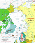 We are looking at an immense ocean of 14.056 millions km square strewn with many islands. The arctic converge up North to a single point at 90° North Latitude – the Geographical North pole.