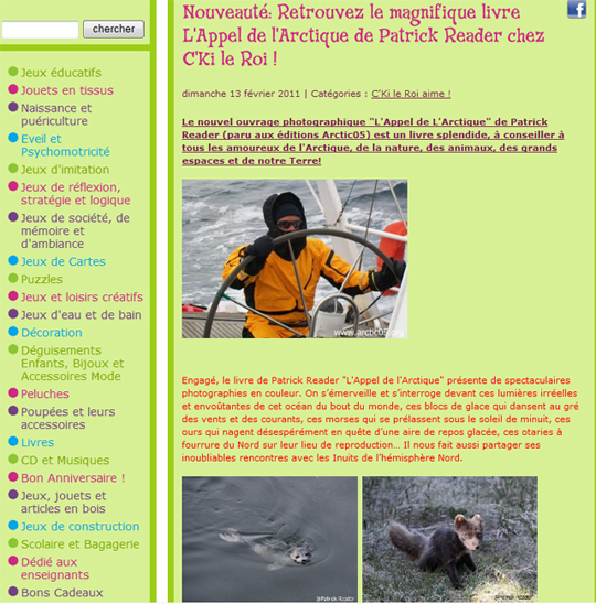 You are looking for a shop where you will find all type of games & books for your child ? Just pop in at C’Ki le Roi (Who’s the King), located in Woluwé, a few minutes from the Montgomery square in Brussels. There, you will be welcomed by a so friendly couple…& discover plenty of great stuff for your children & youngsters, in particular the book “L’Appel de l’Arctique”….
