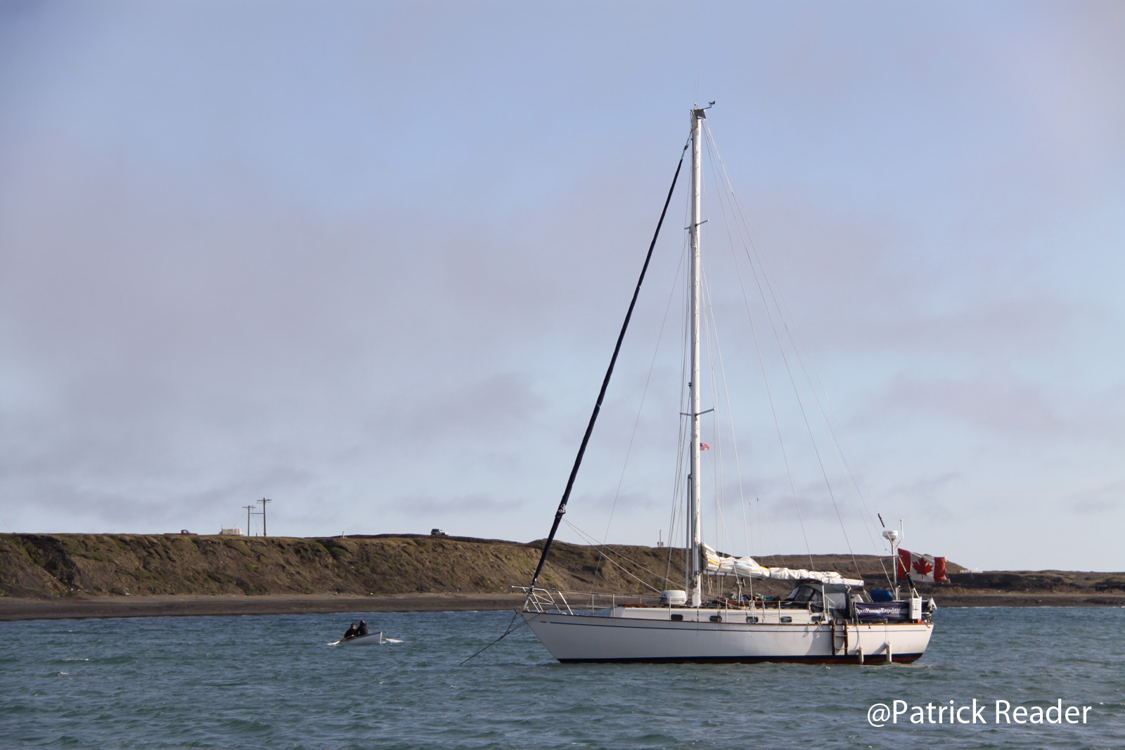 The 40-foot yacht Silent Sound anchored in Barrow, Alaska next to 2 other sailing vessels (Baloum Gwen & Ocean Watch) attempting all 3 the crossing of the Northwest Passage (+-6000km in the Arctic Ocean).